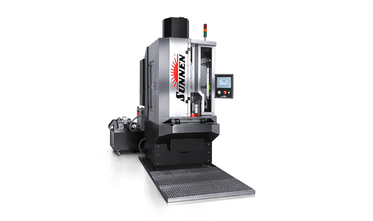 Sunnen SV-2015 with loading / unloading unit, gantry type part handling system, external air measuring system, unique part holding system.